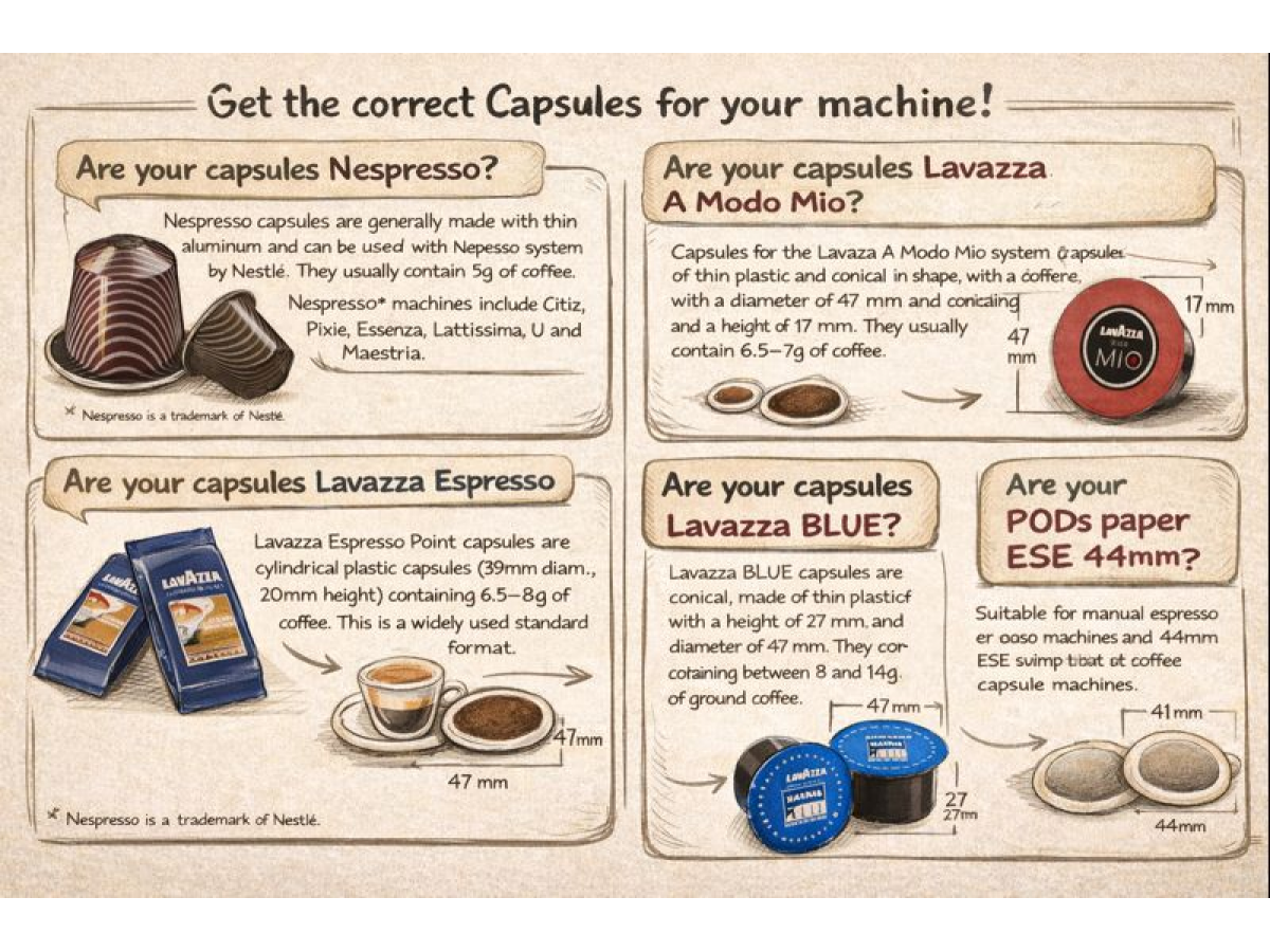 Nespresso capsules are generally made with thin aluminum and can be used only with the Nespresso system by Nestlé. They usually contain 5g of coffee. Nespresso* machines include Citiz, Pixie, Essenza, Lattissima, U and Maestria.