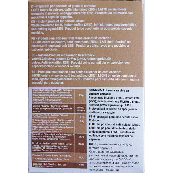 Delicious Cortado Coffee macchiato very creamy and no added sugar.This unsweetened macchiato coffee contains powder milk, instant coffee and no sugar.