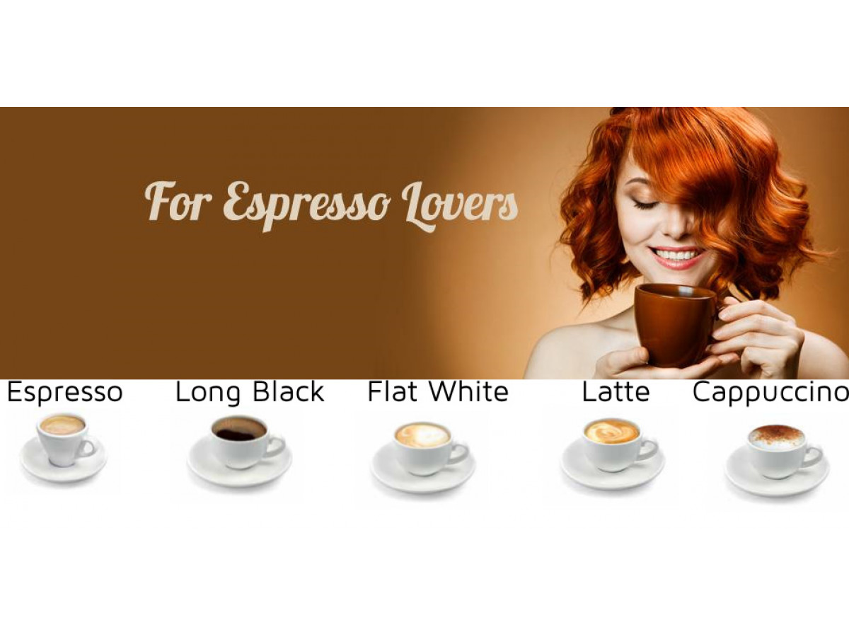 Extract a 30ml shot using a compatible capsule. Froth about 150ml of milk (Robusta blends recommended) and add to the coffee.