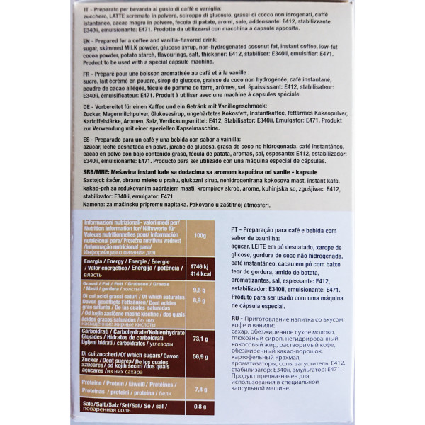 Spectacular coffee and Vanilla drink. This single-serve drink contains instant coffee and is best served as 100ml beverage.